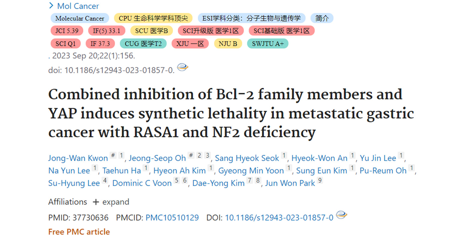 Molecular Cancer:NF2和RASA1缺失如何通过Bcl-2家族和YAP的相互作用促进胃癌干细胞的Wnt信号通路